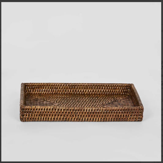 Rattan Rectangular Tray Tidy - Antique Brown - 30cm