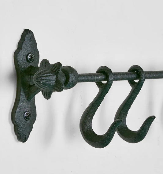 Cast Iron Wall Rack with Hooks - Black - 52cm