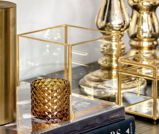 Glass Tealight Candle Holder Amber/ Honey Colour Diamond Shape