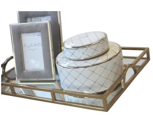 Large Rectangle Arch Handle Tray Gold & Mirror 56cm