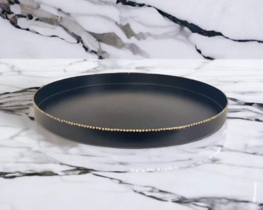 Matt Black Round Tray Gold Rim 41 x 3cm