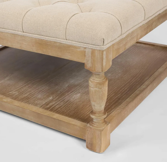 Linen Slip Cover Bench Ottoman - Natural Linen