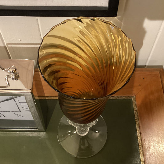 SOLD - Vintage Amber Hand Blown Glass Vase