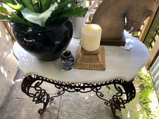 SOLD Vintage Wrought Iron & Marble Console / Table