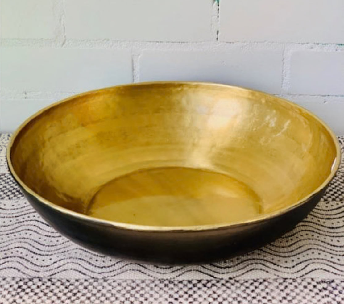 This large bowl, meticulously handcrafted in India, showcases an exquisite combination of matte black and polished brass finishes. Its unique design enhances any setting, offering a sophisticated touch to your decor while serving as a versatile piece for displaying or serving. The careful craftsmanship ensures each bowl is distinct, making it a refined addition to both contemporary and classic interiors.