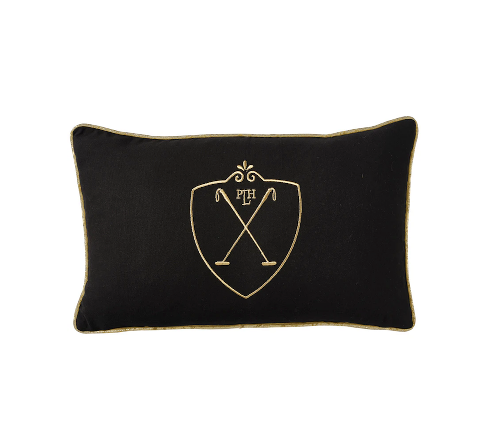 Country Polo Black Cotton Embroidered Cushion 30x50Couldn't load pickup availability