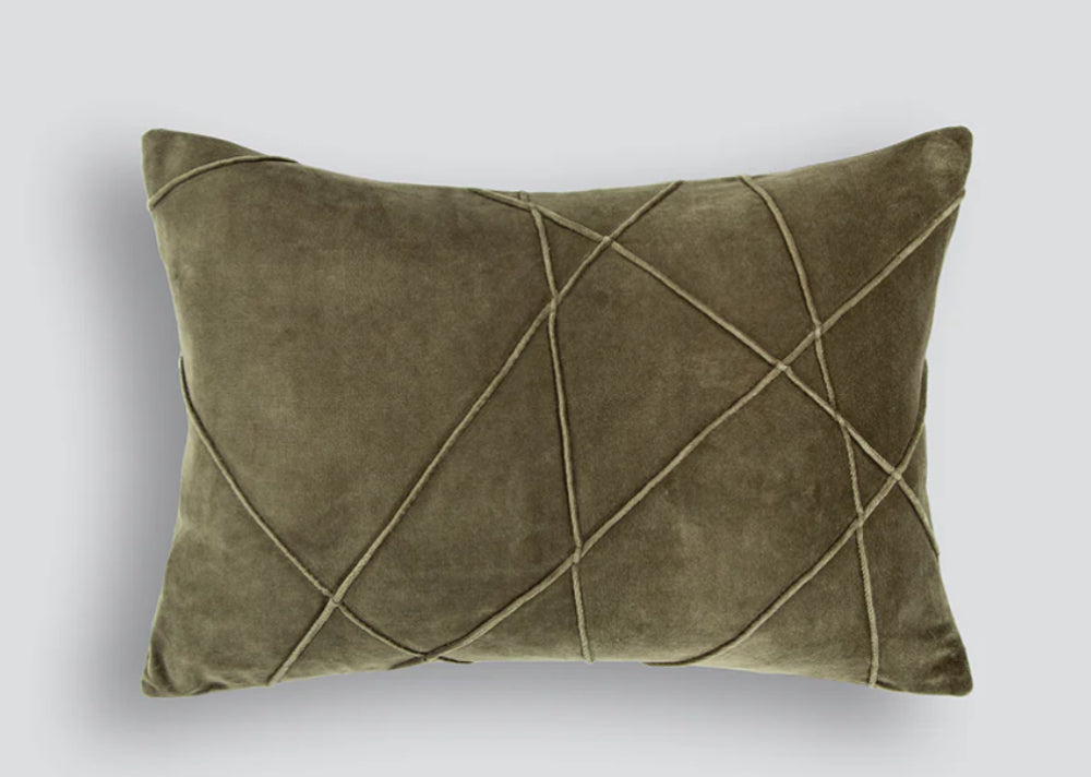 Pleated Olive Velvet Cushion, 35 x 50