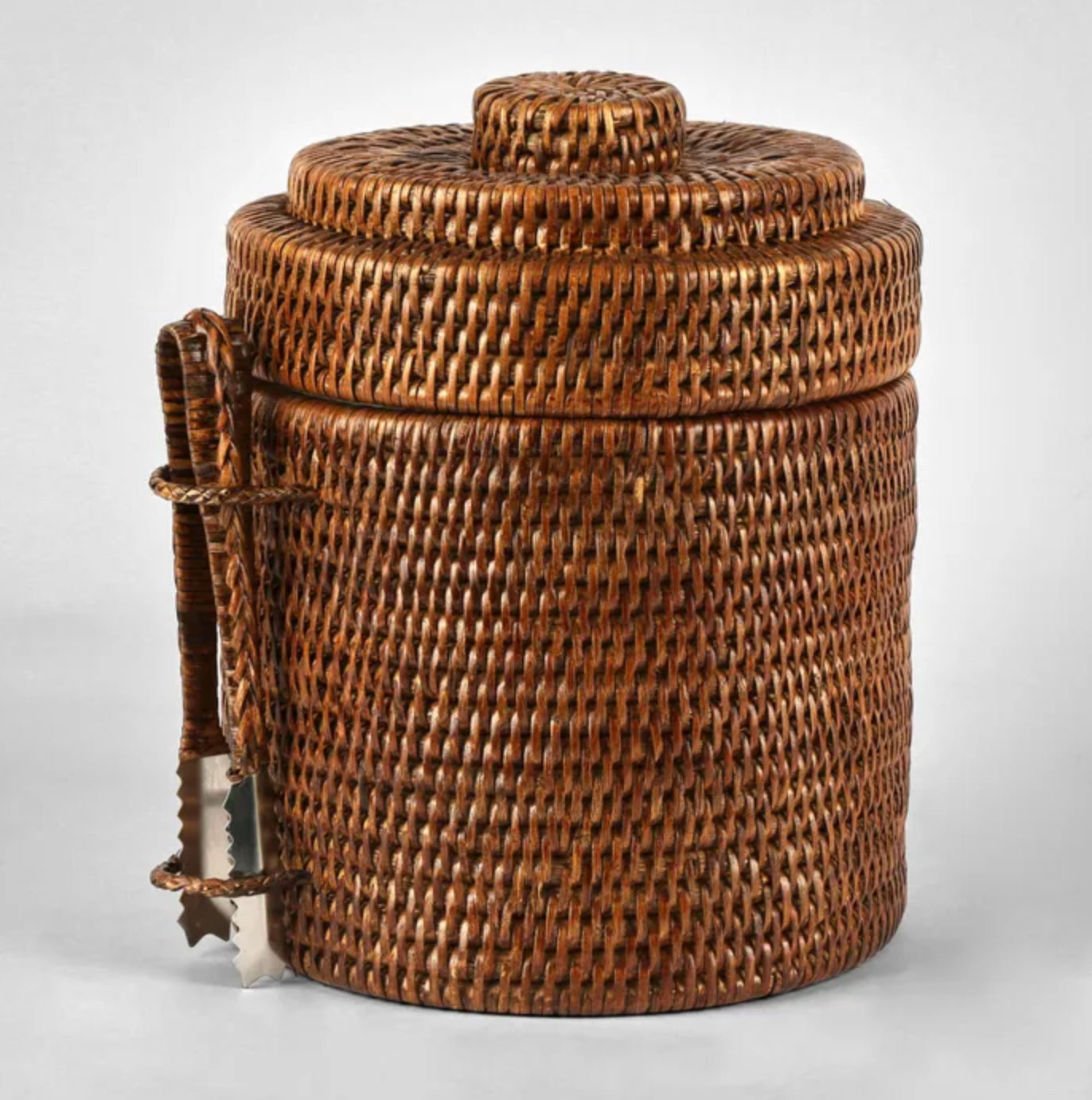 Rattan Ice Bucket with Tongs