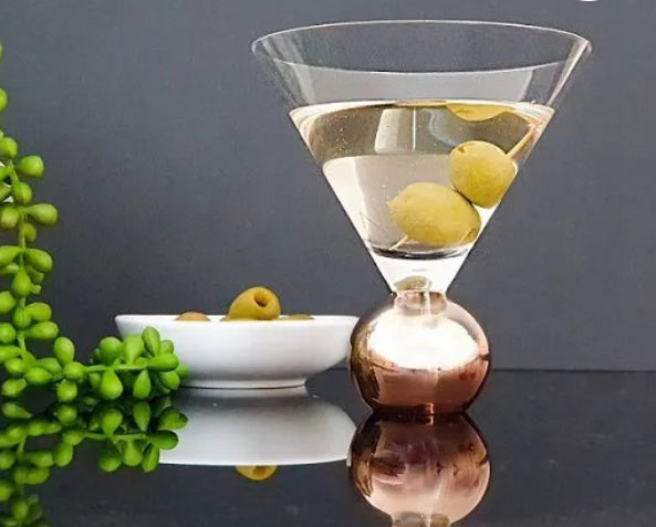 Our Copper Collection martini glasses are a unique design with copper sphere base detail.
